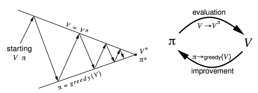 - 정책은 결국 탐욕 정책으로 수렴할 것이다. 이는, 정책함수는 결국 최적의 보상을 얻는 방향으로 정책을 수정해 갈 것이기 때문이다.