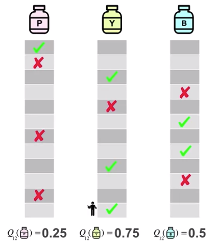 계속해서 노란색(q = 0.75) 약재를 선택하게 될 것이다.
