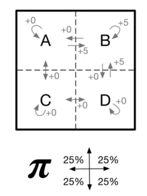 이전에 봤던 다음과 같은 그리드 월드에서의 MDP는 선형대수(선형시스템)으로 푸는 것이 가능했다.