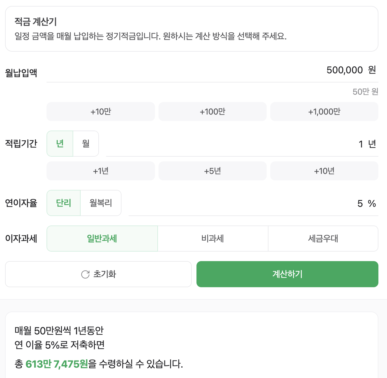 적금은 정해진 기간동안 일정 금액을 정기적으로 납입하고 만기가 도래하면 원금과 이자를 받는 상품입니다.