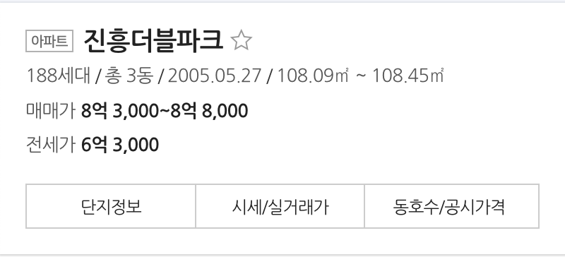 진흥 더블파크는 2005년식으로 앞선 두 단지에 비해서는 조금 구축이다.