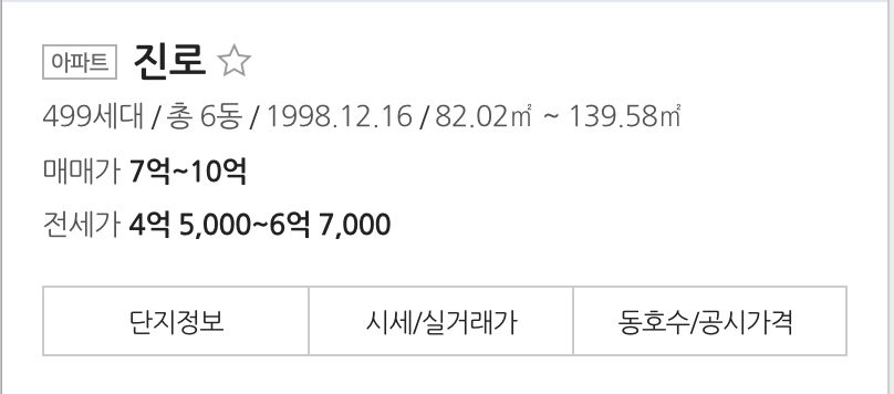 진로아파트는 98년식으로 꽤 오래된 아파트이다.