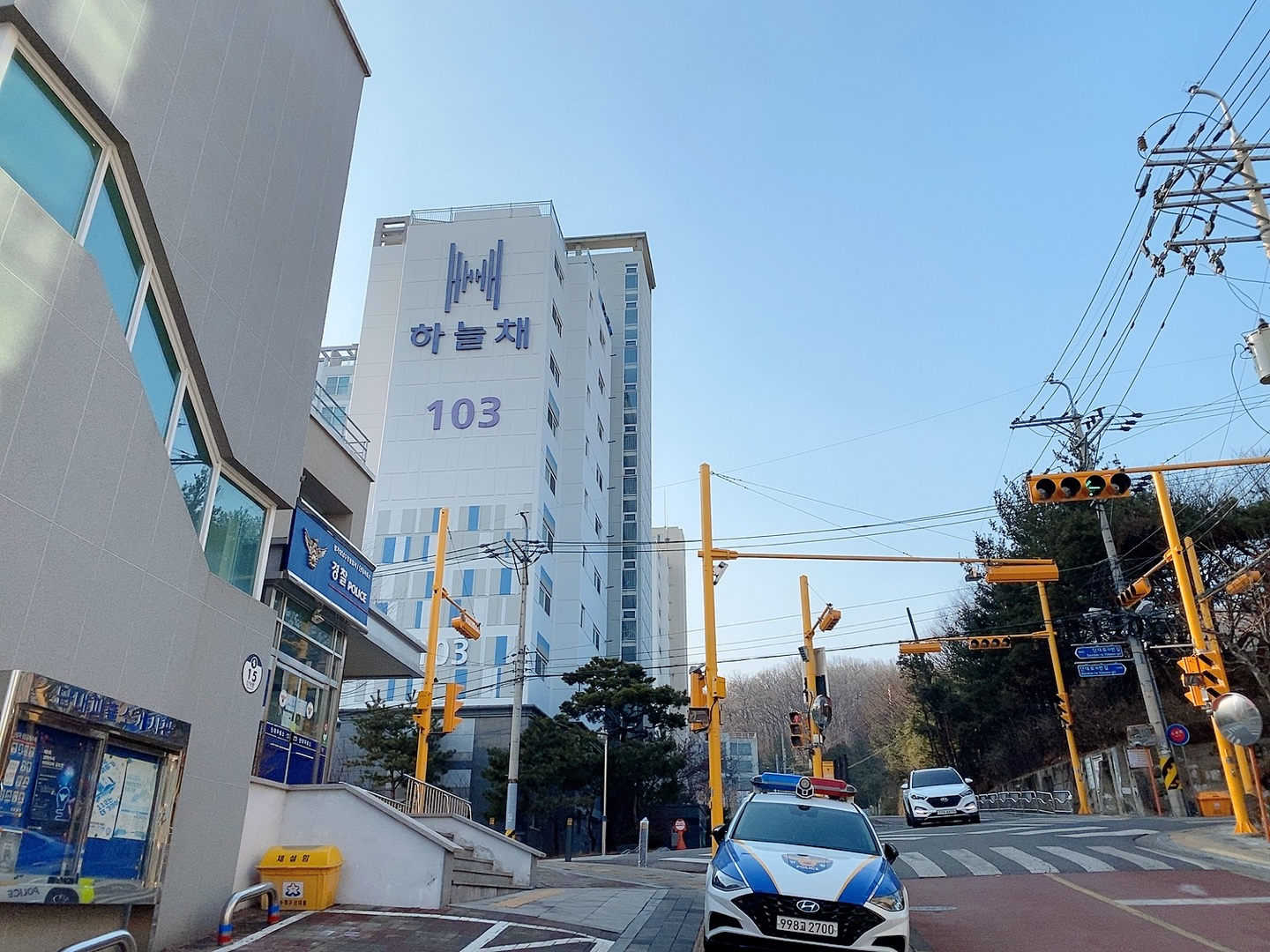 하늘채 앞 경찰서 근처에서 바라본 푸르지오의 모습이다.