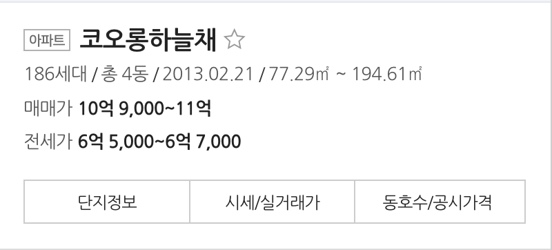 전용 84를 기준으로 매매가는 약11억, 전세가는 약 6.6억,