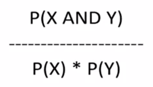 두개의 상품을 같이 살 확률을, 두개의 상품을 각각 살 확률을 곱한것으로 나누어 본다.