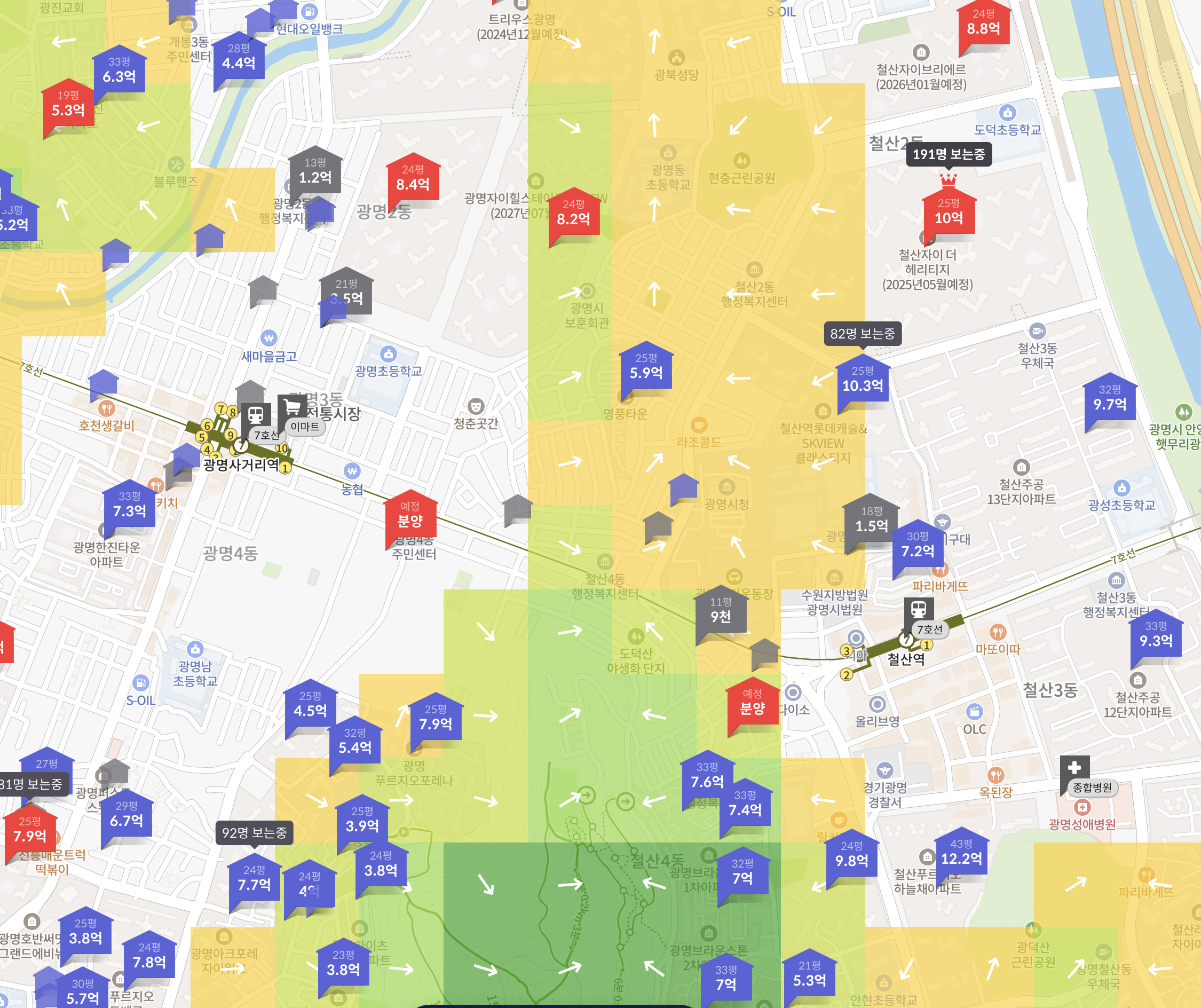 철산역 주변이 광명사거리역 주변에 비해 언덕이 더 많습니다.
