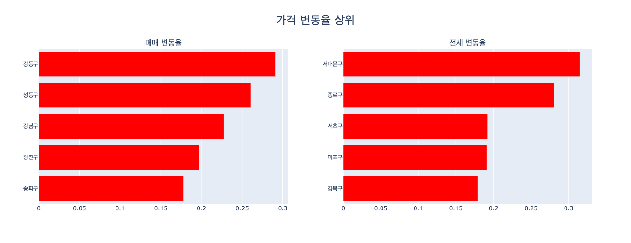 서대문구가 0.31로 갑작스럽게 강한 상승을 보여주었고, 종로구가 0.28 상승하며 그 뒤를 이었습니다.