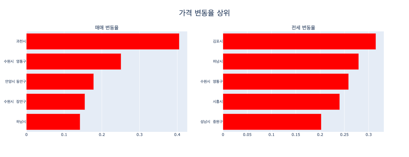 과천시와 수원 영통구의 매매가가 강하게 상승하는 중입니다.
