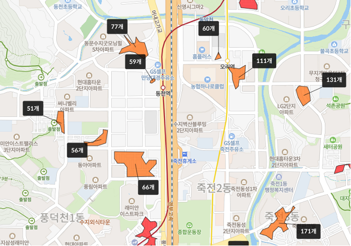 분당이나 죽전 생활권이라고 보는 것이 더 맞을 것 같다.