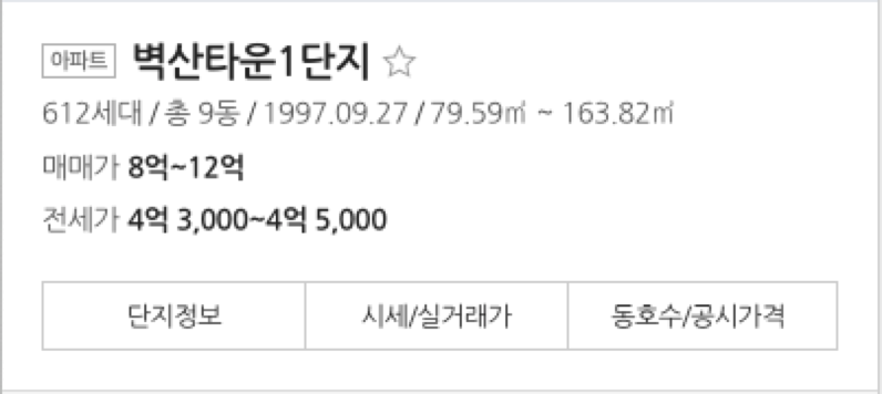 따라서 벽산아파트 1단지부터 5단지의 가격을 먼저 살펴보고자 한다.