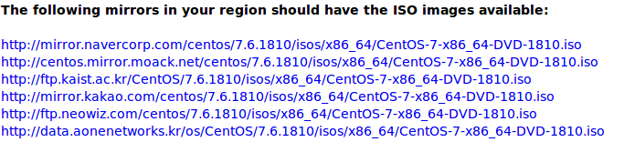 DVD ISO버튼을 클릭하면 위와같은 화면이 나오는데, 이 링크들 중 하나를 선택하시면 다운로드가 시작됩니다.