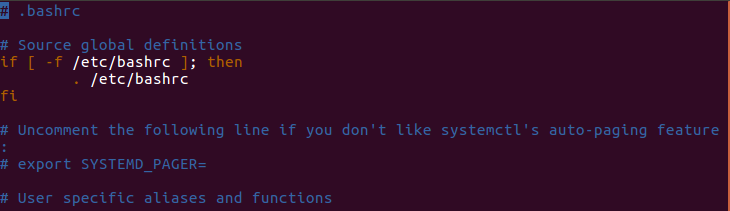 홈 디렉토리에서 .bashrc파일을 열어보겠습니다.