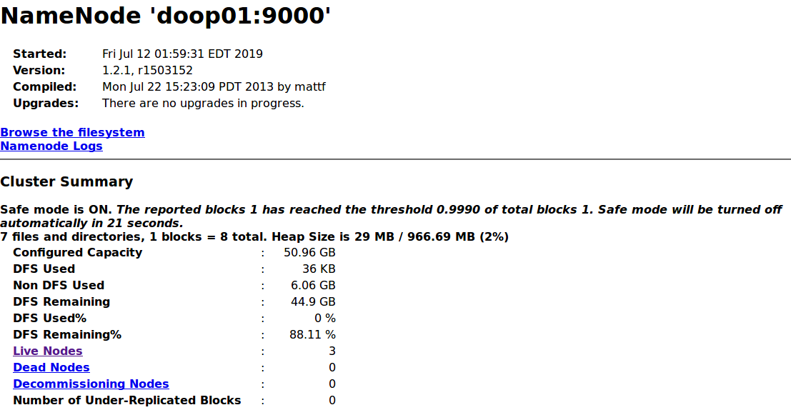 19/07/12 01:23:29 INFO common.Storage: Storage directory /tmp/hadoop-doop/dfs/name has been successfully formatted.