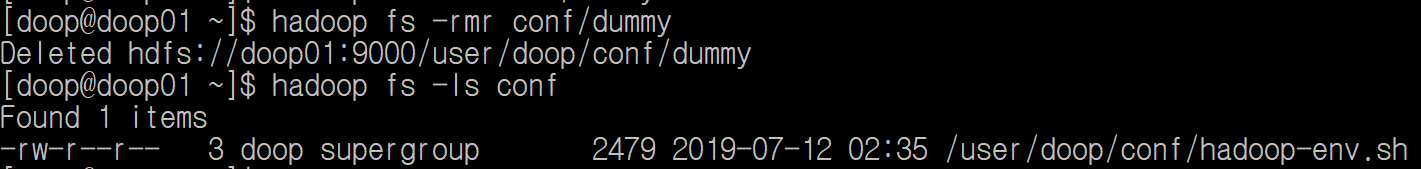 rmr명령을 사용해 디렉토리를 삭제할 수 있습니다.