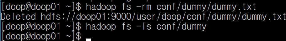 파일을 삭제시킨 뒤 conf/dummy 디렉토리를 ls명령으로 출력해보면 아무것도 출력되지 않는것을 볼 수 있습니다.