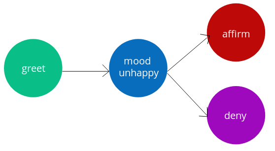 sad path 1과 sad path 2 내부에는 두가지 상태가 공존하게 되어 있습니다. 바로 greet과 mood_unhappy intent들이죠.