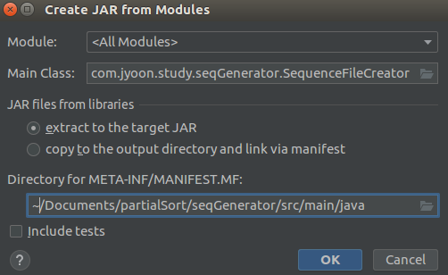 이번에는 위와 같은 Artifact설정을 해주겠습니다. 그리고 artifact이름을 mapGenerator.jar로 변경해줍니다.