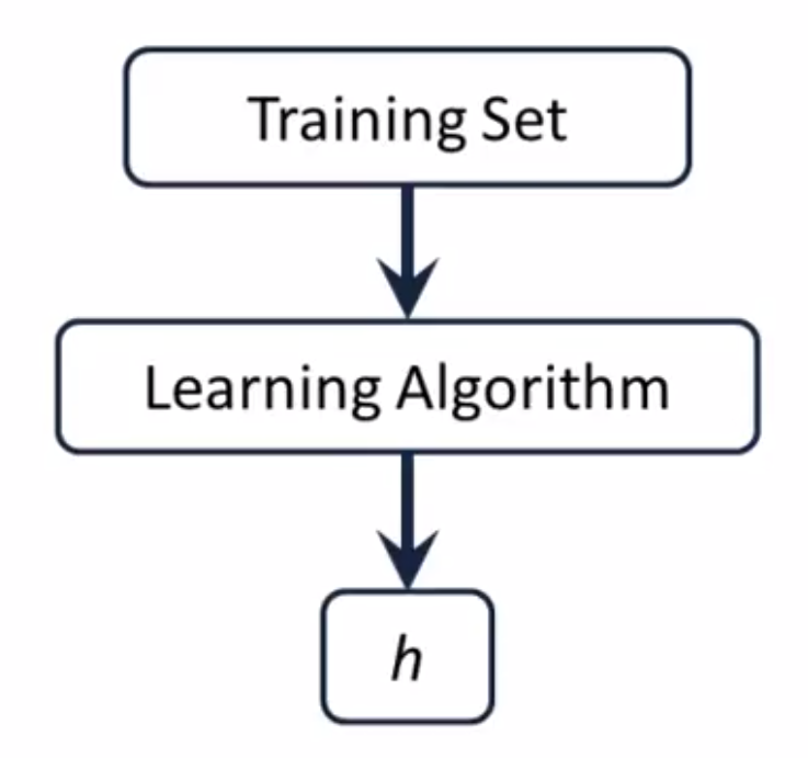 그 과정에서 학습 알고리즘은 가설함수 h를 가지고, 출력을 내게 된다.