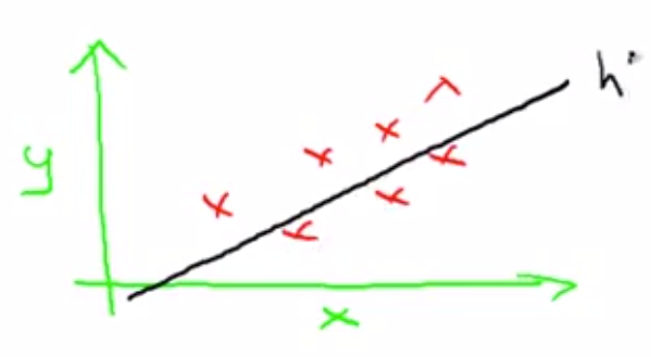 이 x들을 가장 잘 표현하는 1차 선형 함수가 h가 되는것이다.