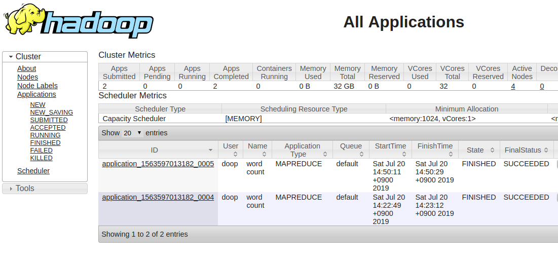 | 하둡 2.0 튜토리얼 - (4) 하둡 실행 (0) | 2019.07.21 |
