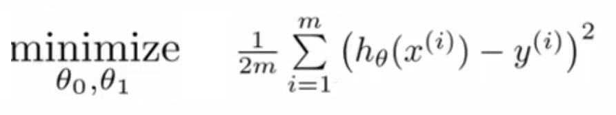이 문제의 목적은 θ0 과 θ1 를 최소화 하는것이다.