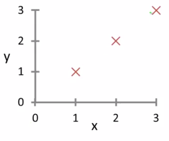 다음과 같은 데이터가 있다고 하고 가설함수와 비용함수를 구해보자: