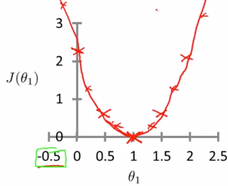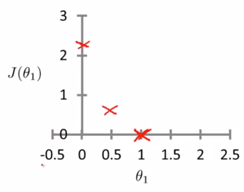 따라서 모든 값들에 대해 가설을 세우고, 비용을 구하면,