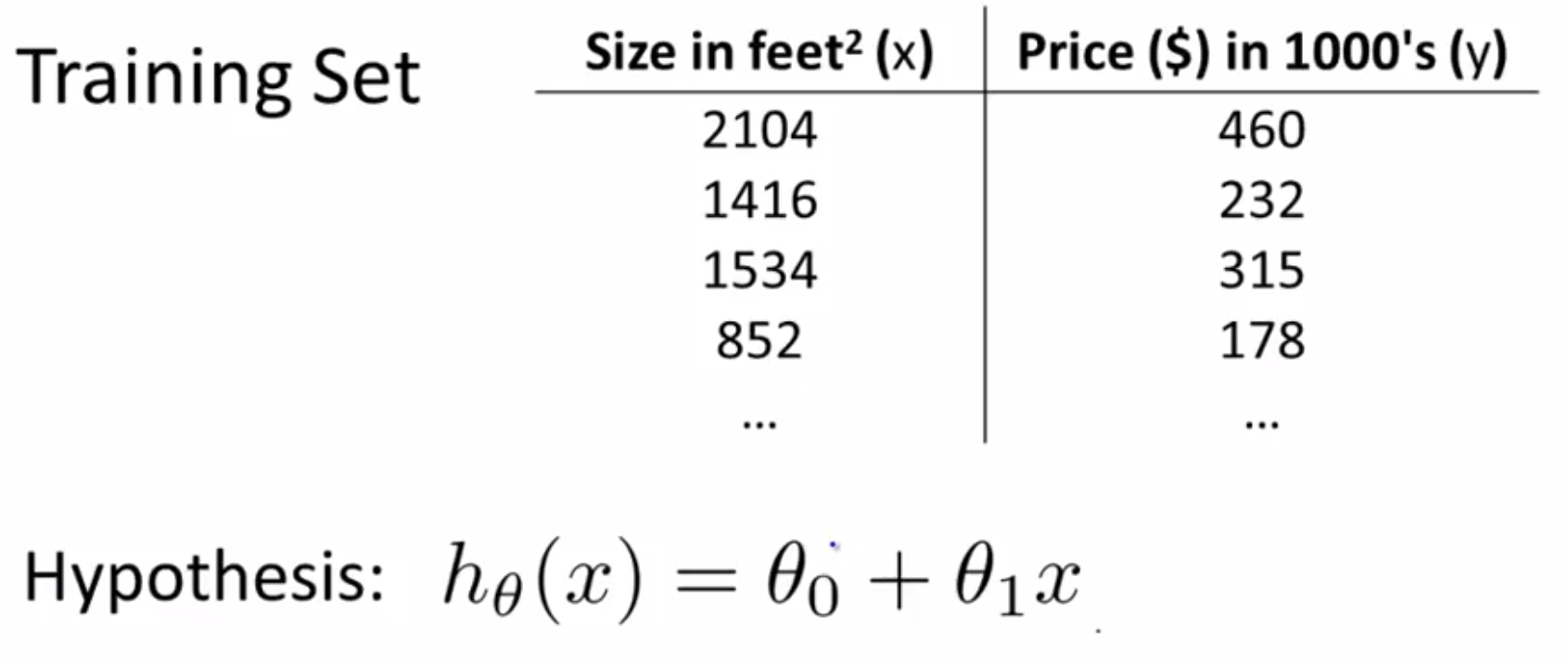 다음과 같은 학습데이터가 있고, 가설함수가 있다.