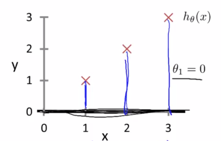 가설함수 h0(x) = θ0 + θ1x 에 대해서 다음의 값들을 대입했을때: