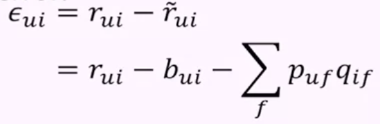 - 예측한 평점과 실제 평점들을 이용해 에러(오차)를 구하고 매번 행렬의 값들을 갱신한다.