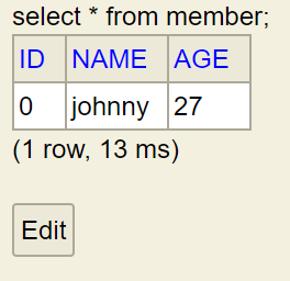 위는 멤버라는 테이블이고, 아이디, 이름, 나이로 구성되어있습니다.
