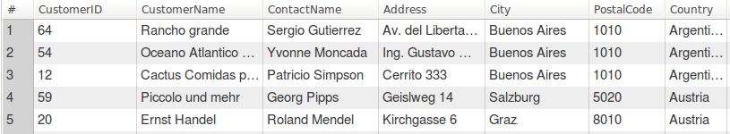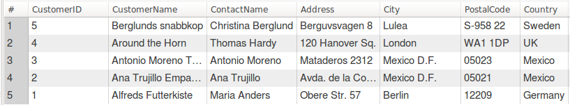 결과 값을 보면, Country로는 오름차순, CustomerID로는 내림차순으로 정렬한 것을 볼 수 있습니다.