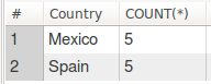 아래 쿼리를 사용하면, 나라에 대한 각 레코드를 카운트 하고, 나라로 그룹핑을 하게 됩니다.