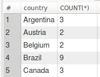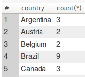 위와 같이 실행하면, 나라 당 Customer의 수를 얻을 수 있습니다.