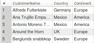 CREATE VIEW NameAndCountry(CustomerName, Country, Continent)AS